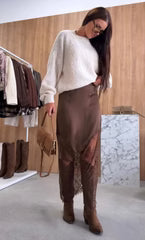 La falda Lía destaca por su diseño único que combina el brillo sutil del satén con la delicadeza del encaje, creando un equilibrio perfecto entre sensualidad y elegancia. Su corte asimétrico aporta un toque moderno, mientras que el tejido ligero realza la silueta. Ideal para quienes buscan un estilo refinado con un aire contemporáneo, perfecta tanto para looks de día como de noche.
