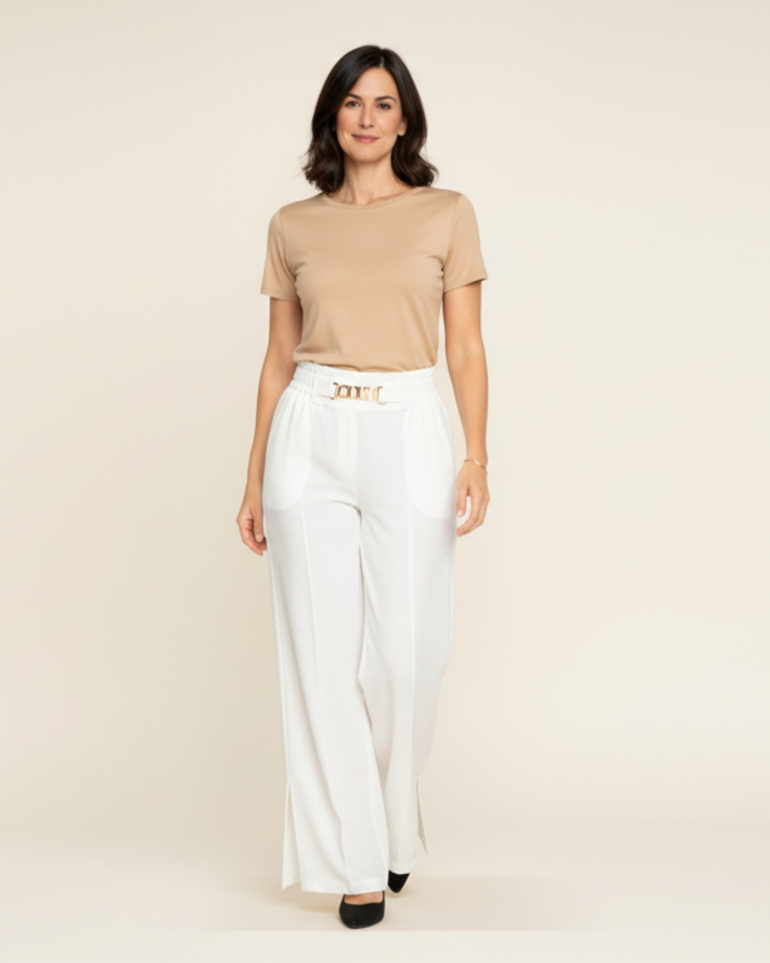 SILUETA DE PIERNA ANCHA – Corte fluido que ofrece libertad de movimiento y un look relajado y sofisticado, ideal tanto para ocasiones casuales como más arregladas.
